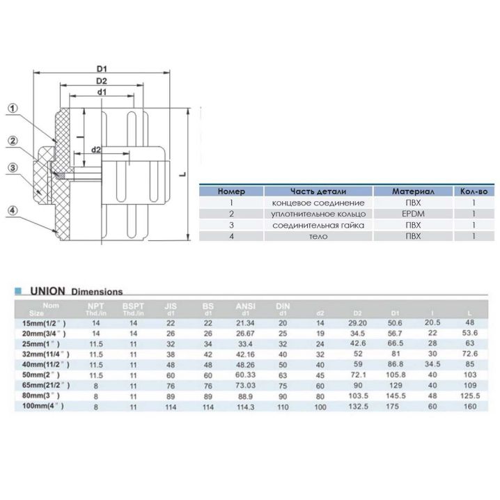 Муфта разборная клеевая ПВХ с уплотнением из EPDM 20 - идеальное решение для надёжного и герметичного соединения полимерных труб для жидкостей под давлением. Она обеспечивает прочное и долговечное крепление, а также защищает от протечек и аварий.